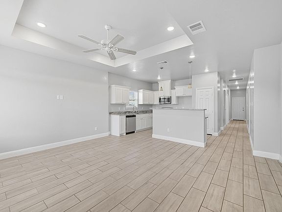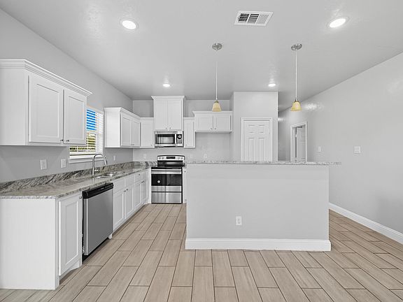 The spacious open layout highlights gorgeous flooring that flows seamlessly throughout the main living areas, creating a cohesive and elegant feel. The kitchen is a true centerpiece, boasting beautiful countertops that perfectly complement the cabinetry, offering both style and functionality for all your cooking and entertaining needs.