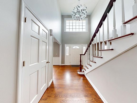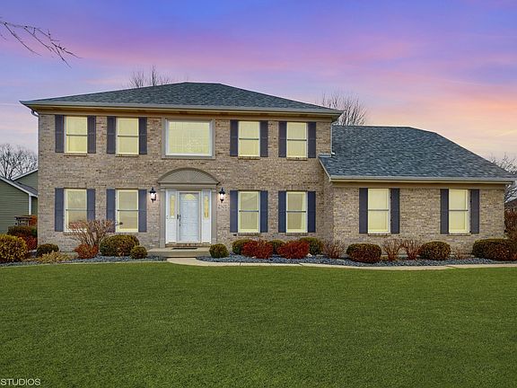 Welcome to Oakhurst! This exquisite brick-front residence with a side-load garage, offering unmatched curb appeal and luxury at every turn. The grand 2-story foyer, adorned with a breathtaking chandelier, leads to a formal dining room on one side and a sophisticated living room on the other. The fully updated kitchen boasts gleaming quartz countertops, a stylish modern backsplash, and chic lighting, while the cozy dinette area flows to a spacious, epoxy-coated concrete patio, perfect for outdoor entertaining. The family room is bathed in natural light from a charming bay window, complemented by a modern paint palette. A versatile first-floor den can serve as a home office or 5th bedroom, along with a remodeled powder room and a first-floor laundry with newer washer and dryer and yard access. Upstairs, four generously sized bedrooms offer ample closet space, while the master suite is a true retreat with vaulted ceilings, a skylight, a walk-in closet with custom built-ins, and a spa-like en-suite bathroom featuring a massive spa shower and double vanity. The finished basement adds extra living space and leaves room for a workshop with plenty of outlets for tools or rechargeable appliances. The fully drywalled garage with epoxy-coated floors provides a polished and durable workspace. Outside, enjoy a professionally landscaped, fully fenced backyard with a large patio and full irrigation system, perfect for entertaining. This meticulously maintained home is brimming with upgrades-welcome home!