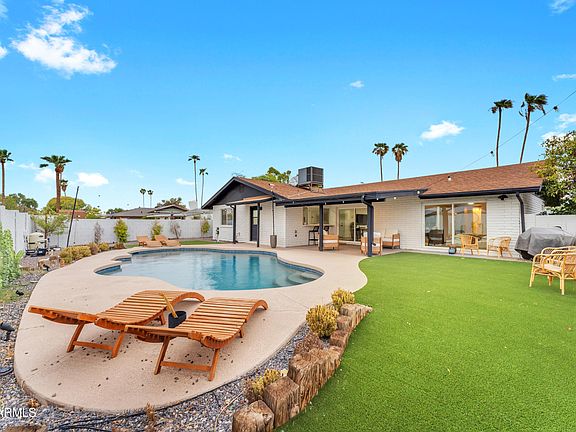 Remodeled, Move-In Ready & No HOA! This stylish ranch-style Tempe home feels like a vacation every day and could be the perfect Airbnb or short-term rental. Enjoy a Pebble Tec pool, spacious layout, and unbeatable location near ASU, Tempe Town Lake, Sky Harbor, and Papago Park. Inside, natural light fills the open layout with a designer kitchen featuring quartz waterfall counters, shaker cabinets, new stainless refrigerator, and a pass-through window for seamless indoor outdoor entertaining. The private primary suite offers backyard access, a walk-in closet, and spa-style bath. Split plan with two guest rooms, updated bath, 2017 roof, newer water heater, and 2024 washer & dryer included!