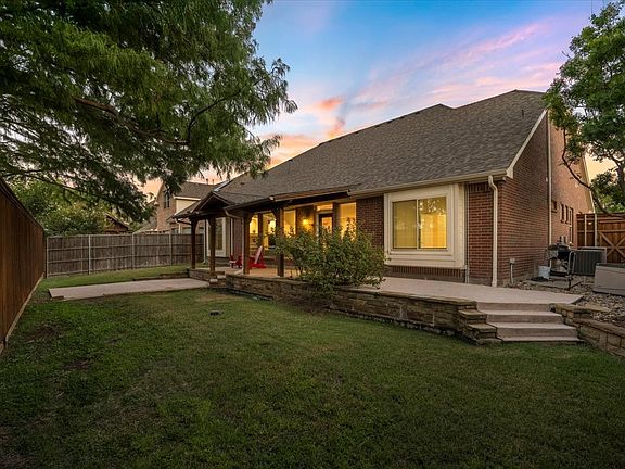 Discover this breathtaking custom one-story home, perfectly situated at the end of a tranquil cul-de-sac, boasting an extraordinary advantage—adjacent to a sprawling, flat green space that is an ideal playground for children and sports enthusiasts. The remarkable floor plan welcomes you with an inviting entryway and seamlessly integrates a home office, the formal living and dining areas are currently used as a vibrant family game and entertainment room. The gourmet kitchen, paired with a generously sized Texas breakfast area, flows effortlessly into a stunning family room highlighted by a cozy gas log fireplace, creating the perfect setting for cherished family moments. Retreat to the exquisite master suite, featuring a serene sitting area and a luxurious bathroom equipped with double vanities, a soaking tub, a separate shower, and an expansive walk-in closet. The secondary bedrooms are well-proportioned, complemented by an exceptional laundry area. Step outside to your large, covered patio, ideal for outdoor gatherings and relaxation. With three side-by-side garages, this home provides ample parking and storage. Located in one of DFW's most desirable neighborhoods, you are just a quick 10–15-minute drive away from Plano’s corporate headquarters, the upscale shops and dining of Legacy West, The Star, the Cowboys’ headquarters in Frisco & the vibrant entertainment options at Grandscape. Enjoy unmatched accessibility to all major highways and proximity to both DFW and Love Field airports. This home is not just a property; it’s a lifestyle waiting for you to embrace!
