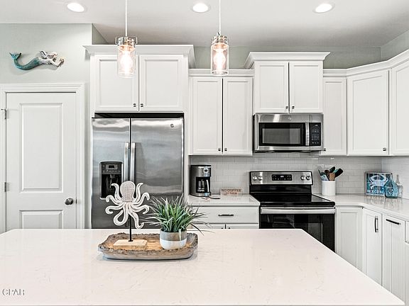 Built in 2021, this modern beach home features an open-concept living space bathed in natural light and designed to capture Gulf views from two oversized balconies. The spacious kitchen features stainless steel appliances, sleek cabinetry, and a large island with seating, ideal for entertaining. Upstairs, the primary suite is a private sanctuary with an en-suite bath, double vanity, and walk-in shower. The enclosed bunk room creates additional sleeping space, maximizing rental income potential.