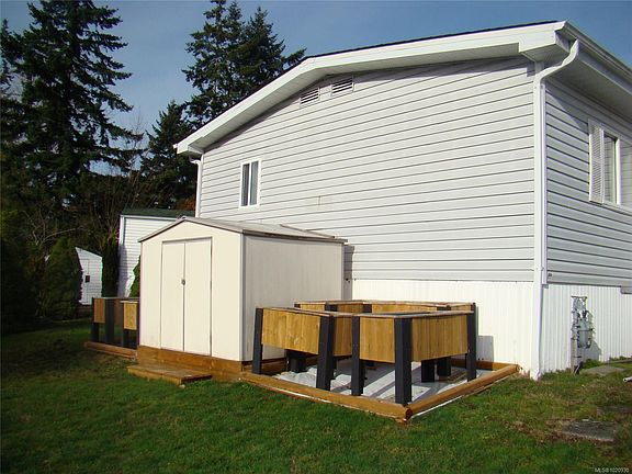 Dogwood Village is in a quiet and peaceful 55+ park and is perfect for retirement or downsizing. Centrally located in the Diver's Lake area and walking distance to Beban Park, shopping, recreation, restaurants and public transit.This 2 bedroom, 2 bathroom double wide mobile home with 15x12 master bedroom situated at the end of home has an ensuite with soaker tub. The main 4pc bathroom is off the large family room. The spacious kitchen has ample cabinets and an eating area with a skylight to let the natural light in.The formal living room has a gas radiant fireplace which is open to the dining room and is great for entertaining. Forced air gas furnace and 8x8 in-suite laundry. Covered carport and patio with attached 8x8 wired workshop and 10x8 garden shed at the rear with several raised garden beds with a low-maintenance landscaped yard.Well managed with an on site manager, pets are welcomed with approval.