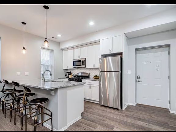 Modern apartment available for rent in highly desirable Lincoln Park neighborhood * Quartz kitchen countertops and bathroom vanity * Soft-close cabinets and drawers. * Stainless-steel appliances including gas range, fridge, dishwasher, built-in microwave, plus full-size washer & dryer * On-site parking included!* Living space can accommodate sectional couch and entertainment set up * Eat-in kitchen fits kitchen table for dining * Bedrooms can fit queen sized bed with limited furniture * Sound-absorbing composite casement windows.