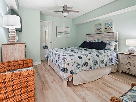 Welcome to Holiday Sands South! This beautifully updated 1-bedroom, 1-bath condo offers everything you need for the perfect coastal getaway or investment property. Thoughtfully designed, it features two custom vanities with quartz countertops—one inside the bathroom and one conveniently outside. The brand-new light LVP flooring flows seamlessly throughout the unit, creating a fresh, modern feel. The primary bedroom is plenty big for a king-size bed, walk-in closet, and large owner’s closet for extra storage. In the kitchen, you’ll find quartz countertops, a stylish tile backsplash, stainless steel appliances, pantry, and coastal-inspired finishes. Extra sleeping space comes from a tucked-away Murphy bed. Step onto your 10th-floor balcony, complete with Polywood captain’s chairs, and soak in the breathtaking ocean views—perfect for morning coffee or afternoon cocktails. Holiday Sands South offers top-notch amenities, including an oceanfront pool, indoor pool, lazy river, hot tub, fitness center, and oceanfront café. You’re just minutes from Myrtle Beach International Airport, The Market Common, and the iconic Myrtle Beach Boardwalk. HOA covers all utilities, exterior insurance, and H06 policy for peace of mind. Additional perks include an in-unit washer/dryer. Don’t miss your chance to own a turn-key ocean-view retreat in one of the Grand Strand’s most desirable oceanfront resorts!