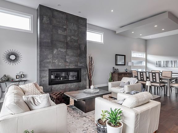 High ceilingsLarge windowsFloor-to-ceiling gas fireplaceHigh-end appliancesInduction cooktopQuartz countertopsLarge deck