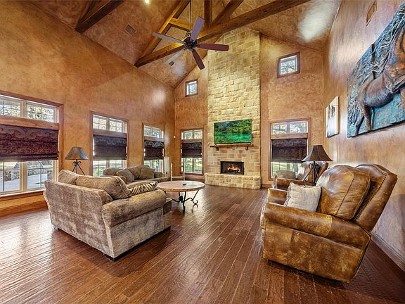 Welcome to a premier 30-acre Western estate where luxury and lifestyle come together seamlessly. Every detail is crafted for those who love the ranch life but appreciate refined comfort. The 4,406 sq ft main home offers four bedrooms, four baths, and warm, open living spaces that flow to a sparkling pool and outdoor retreat. A 1,354 sq ft guesthouse provides privacy for family, friends, or ranch staff. For the true horseman, enjoy a 100×170 climate-controlled indoor arena, a 125×225 lighted outdoor arena, and two barns with a total of ten stalls and automatic waterers. The smaller barn currently serves exotics but easily converts for horses. A 50×100 climate-controlled shop and 1,800 sq ft office make this property ideal for business and ranch operations. Set among mature trees with a one-acre stocked pond and approximately twenty acres of open pasture, this estate captures Western elegance at its finest — and with quick access to the Ric Williamson Bypass and downtown Weatherford, you’re never far from everything you need.