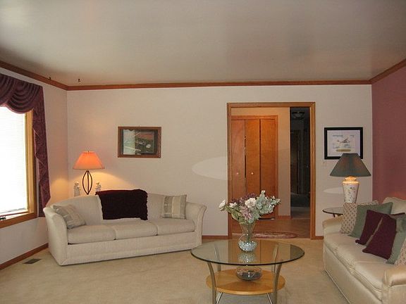 Beautiful home w/lots of extras.Inviting foyer w/views of bay window in living room.Warmth of the fireplace in family room, lrg. kitchen w/table area, plus formal dining room, 1st fl laundry.Lrg master suite w/updated bath, fin. basement w/office & bonus room. Heated 6 car garage, zoned htg/ac, sec. system, & generator. Heated 56x36 building for car enthusiast, lrg enough for camper, farm equip. Add. 5 ac. for sale.
