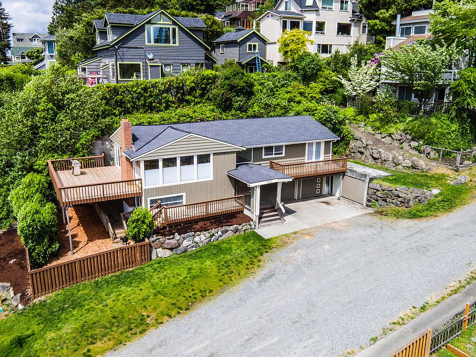 Unparalleled views in Queen Anne on a big lot. Entertain and impress with your expansive views of Elliot Bay from every floor. Watch ships sale from 2 sun drenched entertainment decks w/French doors to master suite. Incredible en-suite mstr bdrm. Gourmet kitchen w/open plan and picture windows to enjoy view. Fenced yard. Unheard of full 2 car attached garage w/shop space & exterior storage for all your toys.
