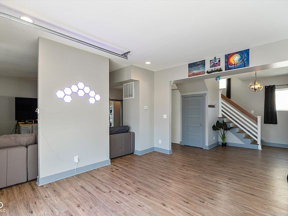 Trendy Architecture and functional lifestyle collide in this 3 bedroom /2.5 bathroom updated home on a large corner lot with multiple outdoor entertainment spaces! Ask about the Seller concessions being offered on this one too! Enjoy 2400 square feet, an open, airy floor plan, soaring ceilings on the main level, and hardwood floors throughout. A custom garage door in the family room is the "wow factor" of the home, providing extra natural light and fresh air into the space. It opens into a private, outside patio with access to the spacious rooftop deck great for entertaining and relaxing. The updated kitchen boasts white Shaw cabinets, granite countertops, stainless steel appliances, a coffee bar area, and generous Island for more storage and prep space!. Updated bathrooms with finishes like tile, custom vanities, and stand alone tub are additional bonuses of this home! A large laundry / mudroom on the main opens to a newly finished patio that includes a large 12 person hot tub and an added privacy fence for an additional outdoor hangout space. Additionally, a waterproofed basement, water softener included, and a 7yr old roof make this home a steal! AND its located less than a quarter mile from the Monon Trail, E-Commute to Broad Ripple, and within minutes if the IndyGo Rail Line-Check it out today!