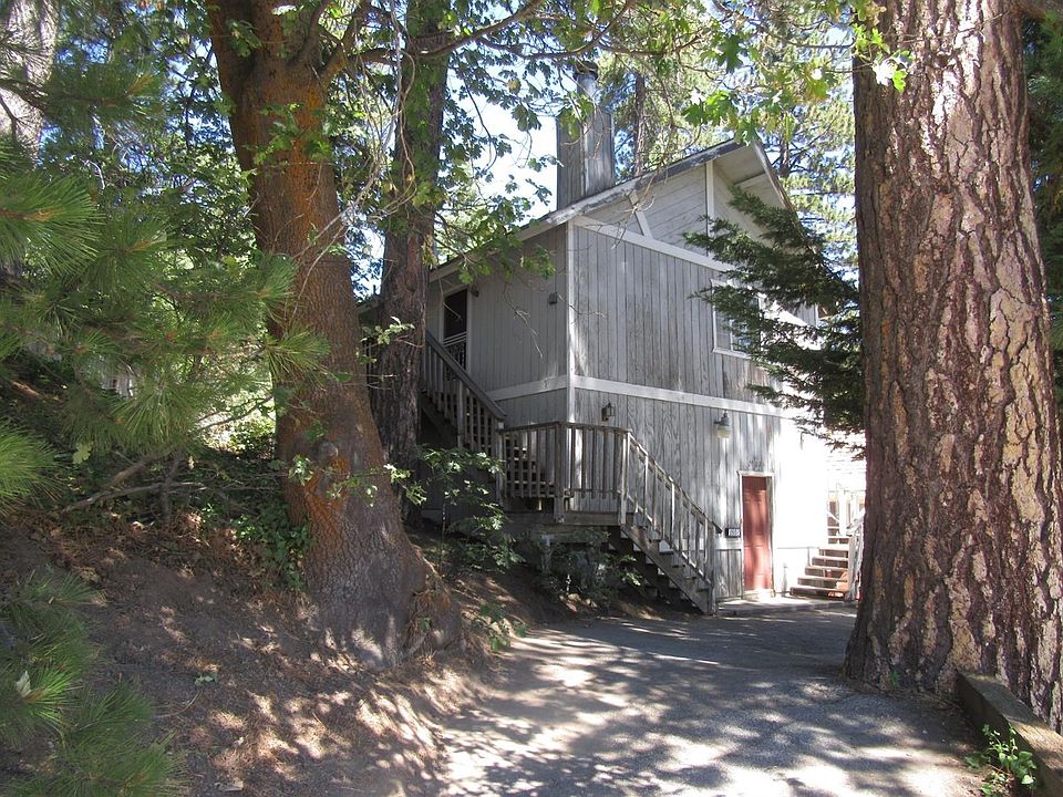 This one is a true diamond in the rough! The neglected exterior belies the nearly untouched interior. The location is just steps away from the Farmer's Market, the village, post office, park and library! It's also a short walk to the hiking trails of the Deep Creek recreation area! There's lots of parking as well! The home is all on one level and features the living room with cathedral ceiling and gorgeous river rock fireplace, the kitchen with a breakfast bar and small dining area, full bath and 2 bedrooms with mirrored closet doors. There's a huge buildup area under the house for future expansion or storage. The affordable price offers a great opportunity to experience mountain living!