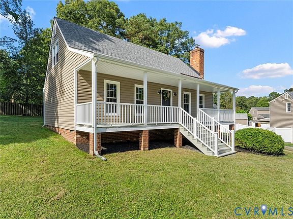 Welcome to 2502 Foxberry Circle in North Chesterfield! This vinyl-sided, cape-style home sits on a peaceful cul-de-sac and is truly move-in ready. Renovated with fresh paint throughout, the living room features a wood-burning fireplace, and two first-floor bedrooms have brand-new carpet. The eat-in kitchen provides walk-out access to a large, newly stained rear deck. A laundry room with a washer and dryer, along with a full hall bath, completes the main level. The first-floor bedrooms are flexible, perfect for a second primary, an office, nursery, or playroom.