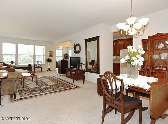 POPULAR "WILMETTE" MODEL WITH A FINISHED BASEMENT*PREMIUM LOT ACROSS FROM PARK AND EXTRA CONSERVATION LAND TO REAR*STAMPED CONCRETE PATIO*EXTENDED GARAGE*SUN ROOM WITH FAN*CHERRY 42" CABINETS, BACKSPLASH* 4 FANS* HUNTER DOUGLAS WHITE WOOD BLINDS*BAY IN MASTER BATH*FULL BATH IN BASEMENT* LARGE BEDROOM IN BASEMENT*EDGEWATER BY DEL WEBB, AN ACTIVE OVER 55 COMMUNITY, NO MORE SNOW SHOVELING, GRASS MOWING! CREEKSIDE LODGE HAS INDOOR AND OUTDOOR POOLS AND A HOT TUB, EXERCISE FACILITIES!