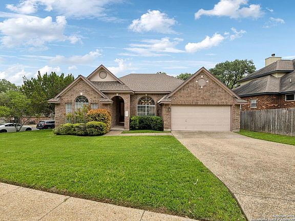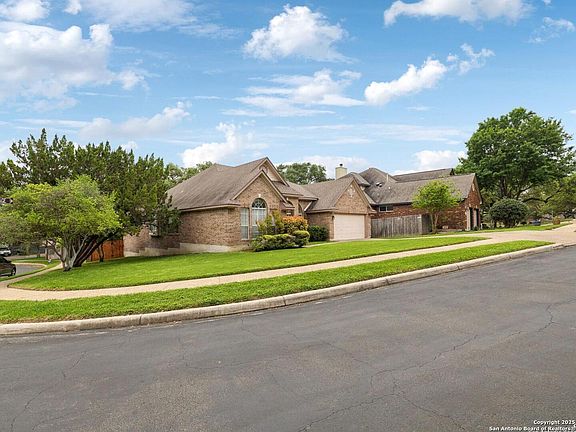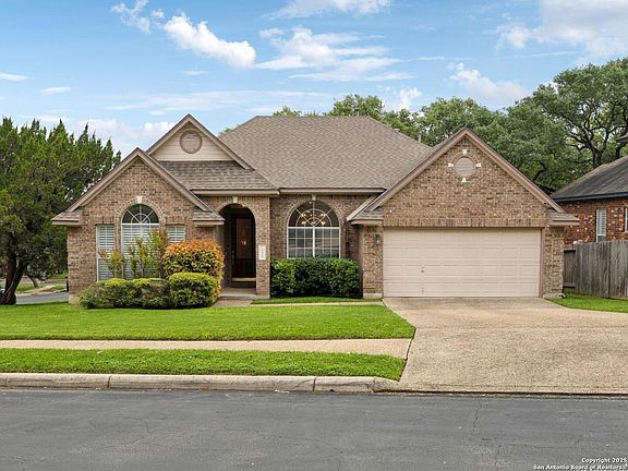 Your Dream Single-Story Awaits in Guard-Gated Summerfield! Discover the perfect blend of classic charm and modern luxury in this beautifully renovated, single-story brick home nestled on a desirable corner lot within the esteemed gated community of Summerfield. Boasting 4 spacious bedrooms and 2 elegantly appointed bathrooms, this 2,637 sq. ft. residence offers an exceptional living experience. Step inside and be captivated by the bright and airy open floor plan, seamlessly connecting the breakfast nook to a stunning, nearly new kitchen. Prepare to be impressed by the exquisite Quartzite countertops found in both the kitchen and bathrooms, complemented by charming brick accents and an abundance of rich hardwood cabinetry. No detail has been overlooked in the extensive renovations, totaling over $100,000. Enjoy the fresh feel of new flooring and baseboards throughout, luxurious marble flooring in the bathrooms and laundry room, and stylish new light fixtures. The master suite is a true retreat, featuring a completely renovated walk-in closet and an abundance of natural light. The fourth bedroom offers versatility with a brand-new built-in bookshelf and closet. Culinary enthusiasts will delight in the brand-new Kitchen-Aide stainless steel appliances (built-in oven, gas stovetop, range hood, and dishwasher). Adding a touch of elegance and privacy are $20,000 worth of new plantation shutters gracing every window. This home exudes sophistication with extraordinary crown molding, wainscoting, and soaring high ceilings. Cozy evenings await by the unique two-way brick fireplace. The expansive master bedroom provides a tranquil sanctuary, complete with a substantial walk-in closet and a beautifully appointed master bath featuring a walk-in shower. Extend your living space outdoors to a magnificent paved patio, perfect for entertaining or simply relaxing while overlooking the sizable yard. Situated in the highly sought-after Northeast ISD, this home offers unparalleled convenience to Wurzbach Parkway, the Medical Center, and the vibrant shops and restaurants of Alon Town Center. Don't miss the opportunity to make this meticulously updated gem your own!