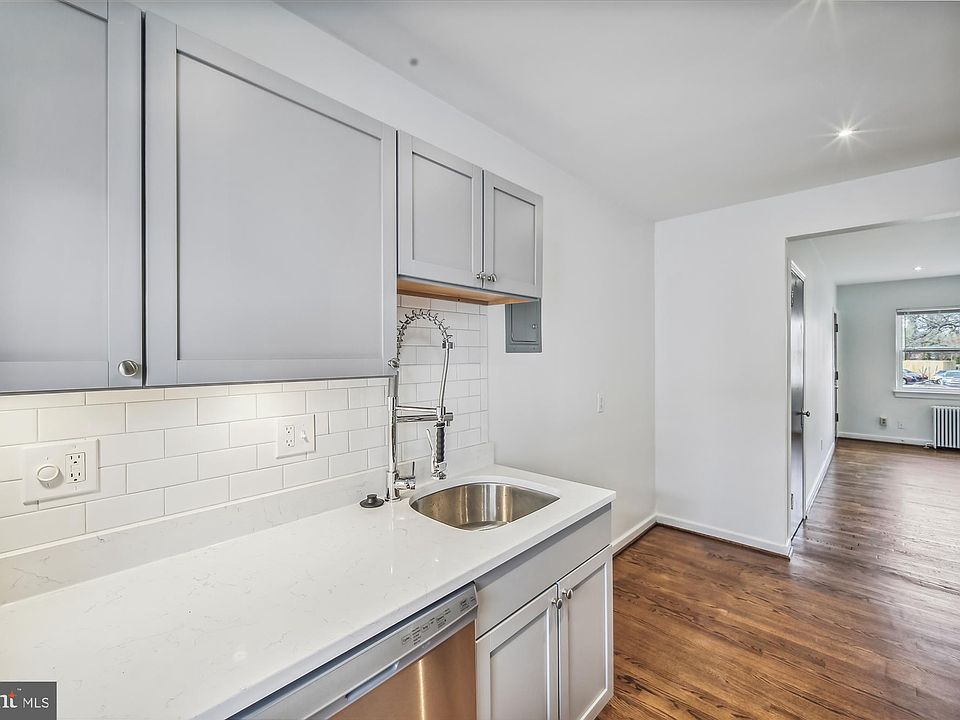 Recently remodeled unit. Private porch area with space to enjoy the outdoors. Bright open space living room and renovated eat-in kitchen with stainless steel appliances, dishwasher, gas stove and full size oven. This apartment features a large bedroom and 3 spacious closets in the hallway. Updated bathroom with bath tub. Gleaming red oak floors throughout. Washer and drier located in common area. Great location only 1/2 mile from Courthouse Metro, walk to Mom's Organic, The Italian Store, Starbucks, CVS and the Custis Trail.