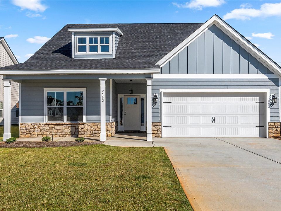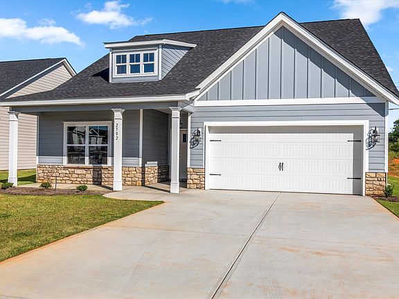The Nottingham Plan by Oconee Capital . Welcome home to this lovely ranch plan. 1901 sq. ft. Beautiful open concept in the family room/kitchen. dining room - vaulted ceilings in great room with fireplace. Kitchen has granite countertops and tile backsplash, stainless steel appliances. Laundry room off of garage entrance foyer. Split floor plan, 2 bedrooms and full bath on right side of home off of entry foyer and spacious owner's suite on left side of home with vaulted ceiling. Owner's bath has separate tub and shower, double vanities and granite countertops. Covered back porch. Landscaped yard and sprinkler system front and back. Double garage, 30 year arch shingles. Call today for your showing.