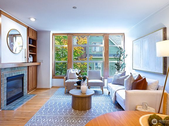 Stunning condo/townhouse located between Greenlake & Wallingford, perfect for commuters with convenient access to I-5, Aurora, or transit. Designed to feel like a spacious townhouse, this 2-bedroom gem includes a versatile flex space—ideal for a home office, media room, yoga studio, or extra storage. The open-concept main level features a cozy living room with abundant windows and superb westerly exposure, bathing the space in natural light. In pristine condition with low-maintenance upkeep, it ensures effortless living. Secure parking garage included. Steps from Greenlake's scenic trails and Wallingford’s trendy shops, cafes, & eateries, this home blends urban convenience with neighborhood charm. Don’t miss this gem!