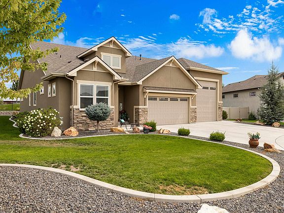 This thoughtfully designed home blends comfort, convenience, and style in one of the neighborhood’s best locations! The open floor plan showcases a welcoming great room with a stone fireplace and abundant natural light, seamlessly flowing into a chef’s kitchen with white cabinetry, quartz countertops, GE Cafe appliances- double ovens, gas range, a spacious island, and a walk-in butler’s pantry that provides plenty of storage and prep space. The primary suite is a peaceful retreat, featuring tray ceilings and a spa-like bathroom with dual vanities, a soaking tub, and walk-in shower. Additional bedrooms are generously sized and offer flexibility for family, guests, or a home office. Step outside to a covered patio overlooking the landscaped backyard, where you can host summer barbecues, gather with friends, or simply enjoy a quiet evening at home. With a three-car garage and RV bay, there’s room for all your vehicles, toys, and storage needs!