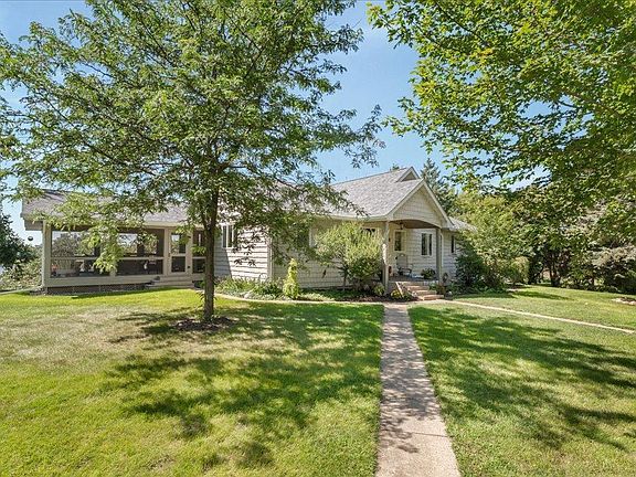 Elegant walkout ranch on Burgen Lake with 158 feet of shoreline on 1.07 acres. This 4-bedroom, 2-bath home with a walkout basement features many new upgrades. Enjoy stunning views from the spacious 3-season porch and a deck perfect for summer BBQs. The open floor plan boasts vaulted ceilings for a bright and airy feel.