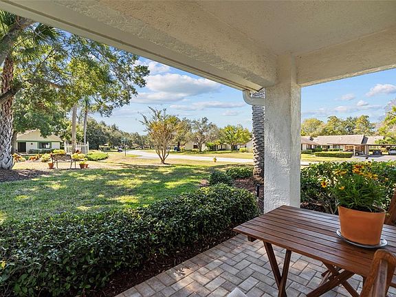Wake Up in Paradise Every Morning. Picture this: you step outside with your morning coffee, listening to the birds singing and taking in the beautiful scenery right from your charming front porch. This peaceful moment is yours every day in this end-unit villa, one of the very few in the community with this cozy front patio space. Inside this meticulously maintained, 1 bedroom, 1 and a half bath home is spacious, welcoming, and move-in ready - even partially furnished for your convenience, if requested. Enjoy your updated kitchen with stainless steel appliances and plenty of cabinet space. There is even room by the picturesque front window for a table to enjoy your breakfast with a lovely view. The dining room and living room combo can fit quite a bit of furniture and is a cozy place to relax with its clean, plush carpet. Open the sliding glass doors to your large, fully enclosed lanai, perfect for hosting friends, using as an office or just curling up with a good book. The generously sized bedroom feels bright and airy with a walk-in closet and a beautifully updated en-suite bathroom. Towards the front of the villa, you have the laundry closet with a full-size washer and dryer and also your half-bath, perfect for when you are entertaining. And when you’re ready to get out and about, this active 55+ community offers everything you could want - a clubhouse with a function hall featuring a full-size kitchen for events and gatherings, a stunning lakefront large heated pool, a game & billiard room, fitness equipment and a fully stocked library. Enjoy the ease of a walkable community surrounded by lush greenery, winding sidewalks, and peaceful natural scenery perfect for morning strolls or evening walks. Whether you’ll be here full-time or seasonally, and you’ve been dreaming of a quiet, carefree Florida lifestyle surrounded by nature and community, this villa is calling your name. Call me today for more info or to schedule a showing.