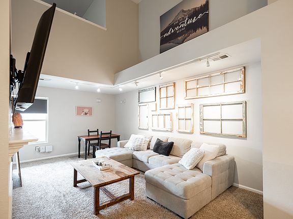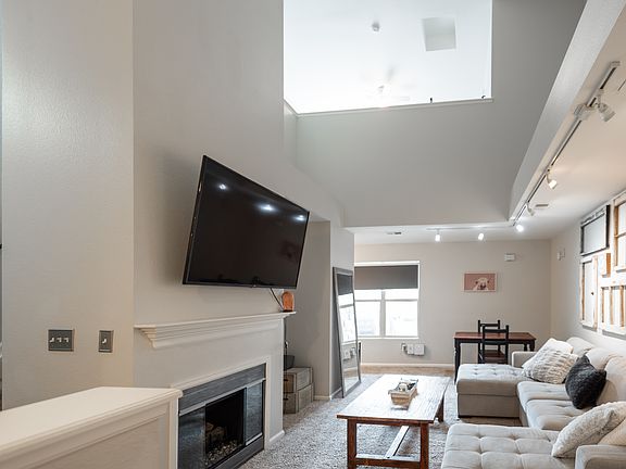 The open living space features vaulted ceilings, a cozy fireplace, and plenty of natural light. Neutral tones, plush carpet, and an open concept to the kitchen will have you feeling right at home.
