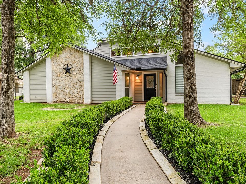 Welcome home to this beautifully renovated home in the sought-after Raintree Subdivision! This 2,100 square foot home has 4 bedrooms and 2 bathrooms to provide ample space for the whole family! As you step inside you are greeted by soaring vaulted ceilings complete with a floor to ceiling masonry fireplace as well as large picture windows to allow in natural light. The kitchen is a dream with recently replaced cabinets, quartz countertops, a farmhouse sink, gas range, stainless steel appliances, and floating shelves. The large primary bedroom boasts French doors and a newly redone primary bath complete with designer tile. Additionally, you will find 3 more spacious bedrooms and another bath complete with designer tile. This home boasts an enclosed and air conditioned patio that is perfect for a home gym or sunroom and the backyard has been completed upgraded with an expansive rear patio and an above ground pool complete with a built-in deck around it! This home has been extremely well-maintained with the siding and roof both being replaced in the last 5 years and all appliances convey! This home truly has it all and will not last long. Schedule your showing today!!