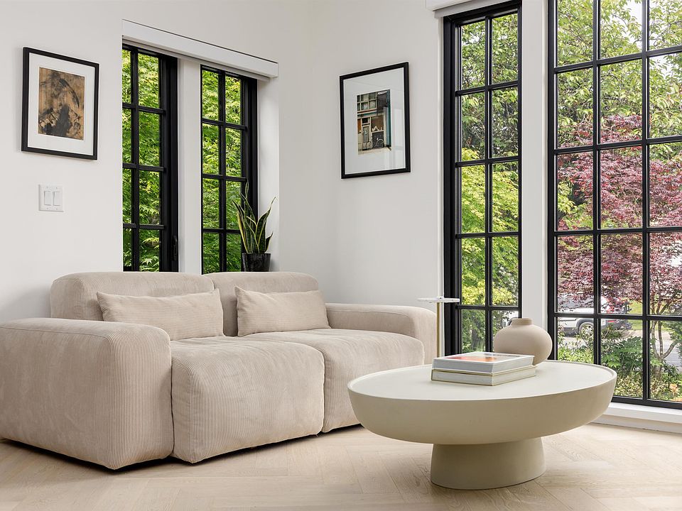 This stunning townhouse is the result of a collaboration between two award-winning design firms: Sophie Burke and Birmingham & Wood. Offering a striking blend of timeless sophistication and nostalgic elegance, very detail works together to welcome and impress: from the lofty over-height ceilings, to the fine bespoke millwork, period-style front door, mission tile, herringbone oak floors and light-filled rooms. The gourmet kitchen, outfitted with top-of-the-line appliances, makes cooking a pleasure. Entertain in the gorgeous main living space which overlooks picturesque greenery outside. Spa-like ensuites complement both bedrooms with the primary offering a walk-in closet with custom built-ins. Private garage (previously a studio) veranda and yard space. Great neighbourhood and schools.