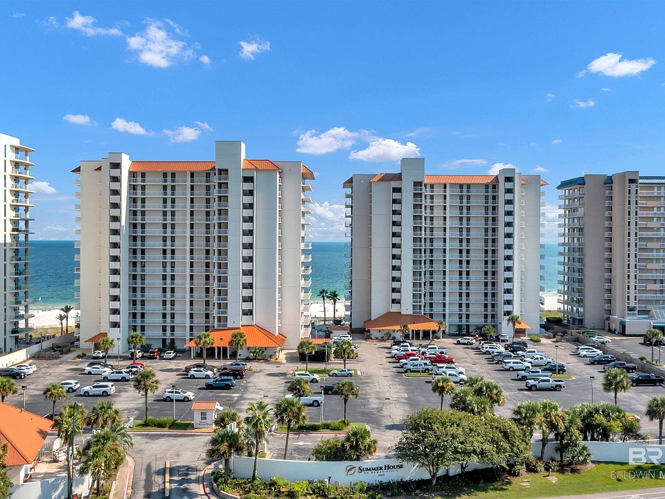 Summer House of Romar Beach has always been a cherished Orange Beach complex. The location directly across from shopping and restaurants, and the humongous balconies set it apart for your ease and enjoyment. Both buildings have been updated in 2024 to new hurricane standards to include new windows, doors, railings, and exterior. You will love this unit on the perfect floor, not too high and not too low. This Gulf front condo has all new furniture, new electronic hurricane shutters, a walk-in shower in the primary, new blinds, new carpet in bedrooms, shiplap in the ceiling & new backsplash in the kitchen and one wall in the dining room. new washer, dryer, stove, and refrigerator 2023, new microwave 2024, new dishwasher July 2025, HVAC is 7 years old, and water heater is 5 years old. The deck furniture is high-end polywood. All new paint, new light switches & outlet covers, and removal of popcorn ceilings are more details you will see. Fantastic gated complex with indoor pool, large outdoor pool with tons of decking, hot tub, tennis, fitness, boat/jet ski, trailer storage, small playground, tennis/ pickleball court, hot tub, basketball court, sauna, fitness center, BBQ area, and meeting rooms for COA. The oversized Gulf front balcony can be accessed from both the living room and the primary bedroom. The boardwalk is a short walk to the private 400' of sugar white sand and Emerald waters of the Gulf of Mexico. Owners can bring their dogs. This unit would be a good investment or second home. Buyer to verify all information during due diligence.