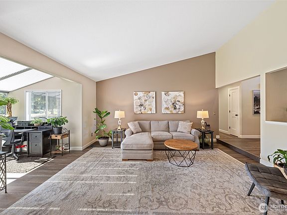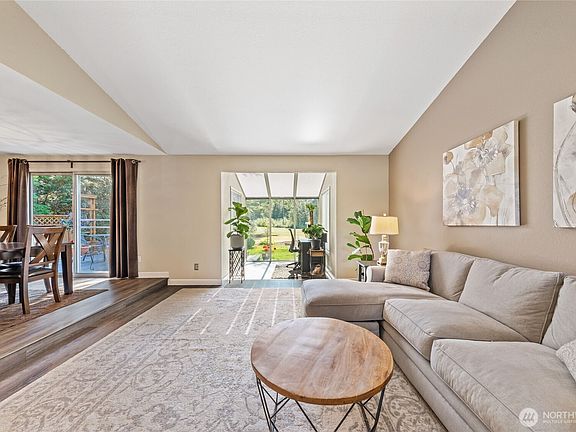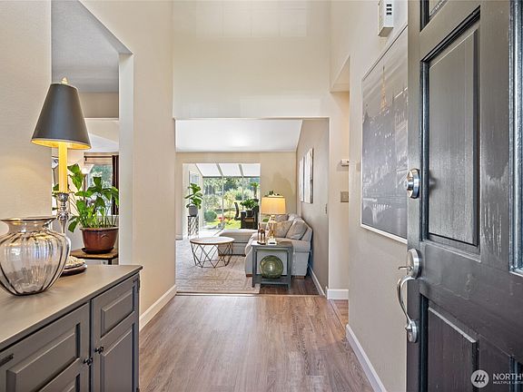 Beautifully updated 3-bed, 1.75-bath rambler on the fairway of the 18th hole at Lake Wilderness Golf Course. This single-level home features a stunning atrium that fills the space with natural light, a fully remodeled kitchen (2022), updated primary suite, and LVP flooring throughout most of the home. Recent upgrades include new roof (2025), Trane furnace and A/C (2021), new carpet in guest rooms, and extensive crawlspace improvements. Interior updates include new doors, trim, baseboards, and lighting. Enjoy a landscaped backyard with pavers and rock features. Centrally located near Lake Wilderness in the heart of Maple Valley, with low HOA dues and walking distance to the new golf course clubhouse and restaurant (est. 2026).