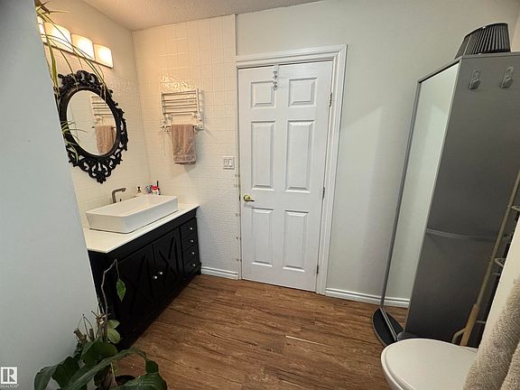Charming 4-bedroom bi-level home on approx. 3 acres, ready for a new family. Renovations include a fully updated kitchen with modern finishes and a portable island, refreshed bathrooms, and a fully finished basement. The kitchen opens to a 25' x 14' west-facing deck—perfect for sunsets. Main floor features a cozy living room, primary bedroom with 2-pce ensuite, and second bedroom. Downstairs offers two more bedrooms, 3-pce bath, large family room with a wood-burning stove, laundry with washtub, and cold storage. Hot water on demand system in place. Beautiful, private yard surrounded by mature trees. Includes a 21' x 24' wired Quonset with concrete floor, plus a second outbuilding ideal for a garage, workshop, or storage (dirt floor, metal roof). Just 2.5 miles west of Hwy 2—rural living with easy access.