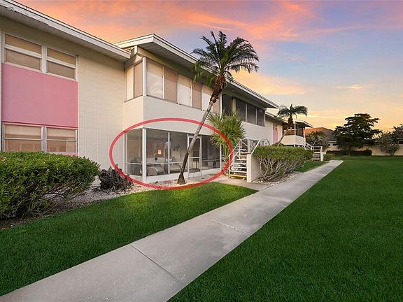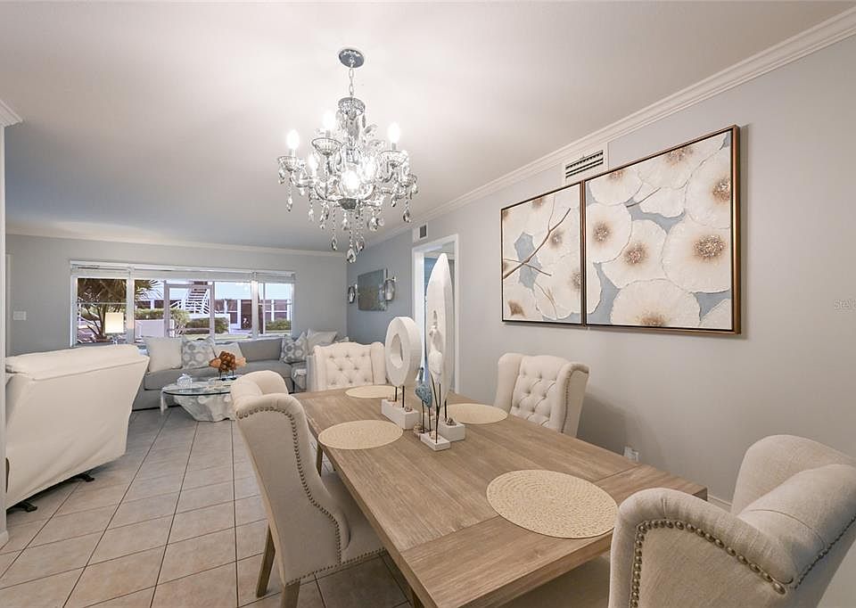 FOR THE FIRST TIME EVER, THESE UNITS CAN NOW BE RENTED AS OF OCTOBER 2025!! Welcome to 2503 Beneva #3 in Sarasota, a beautifully kept, coastal-style condo that feels more like a cottage than a condo. The main living and dining areas flow together with neutral tile floors, crown molding, and soft gray walls, creating a bright, open space that’s easy to furnish and perfect for entertaining. A crystal chandelier, updated lighting, and stylish décor give the space a polished, move-in ready feel. The comfortable front living room opens to a second sitting area overlooking the lush courtyard, giving you two separate spots to relax or host guests. The kitchen offers plenty of cabinet and counter space, stainless steel appliances, and a clean, classic look that ties in nicely with the rest of the home. The bedroom is calm and inviting with soft coastal colors, plenty of natural light, and an en-suite bath featuring a tiled walk-in shower and glass doors. Step outside to the screened lanai to enjoy evening breezes and sunset skies over the manicured courtyard. Just beyond, the community pool area is framed by mid-century style buildings, tropical landscaping, and a sparkling blue pool—an easy everyday escape right outside your door. Whether you’re looking for a Sarasota getaway or an income-producing property now that rentals are finally allowed, 2303 Beneva #3 offers an easy, low-maintenance lifestyle in a charming, well-kept community.