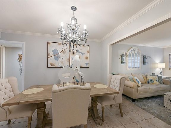 Manicured courtyardUpdated lightingSparkling blue poolPlenty of natural lightCrystal chandelierNeutral tile floorsCrown molding