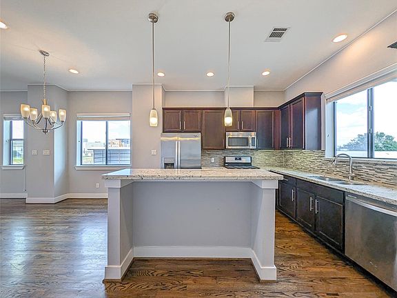 Welcome to the beautifully maintained 3-bedroom, 3.5-bath home, located in a quiet neighborhood at east downtown and offering an open-concept living space filled with natural light. The modern gourmet kitchen features marble countertops, stainless steel appliances, and ample cabinet space, making it a chef's delight. Home boast of engineered wood throughout. Spacious family room with sleek modern vibes. The 3RD FLOOR spacious primary suite includes en-suite bathroom with luxurious water jet bathtub. The additional bedrooms are generously sized, an additional home office. Located just minutes from downtown Houston, this home is surrounded by excellent dining, shopping, and entertainment options. Walking distance to Minute Maid park and Shell energy stadium, Cidercade, Settegast and other attractions and midway developments. Easy access to major highways makes commuting a breeze. Don't miss the opportunity to make this beautiful house your new home!