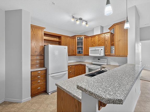 This 2-bed, 2-bath main-floor condo blends comfort and convenience. Owned and maintained by the original owners, it features an open-concept layout with A/C, a spacious primary suite with walk-through closet and ensuite, and a private patio with gas outlet ideal for outdoor relaxation.The kitchen stands out with oak cabinets, granite sink, under-cabinet lighting, a lazy Susan, and ample storage. Practical perks include a heated underground parking stall with storage cage and access to a convenient car wash bay. The main entrance and fitness centre are steps from the unit.Additionally, this pet-friendly building offers a recreation/games room, guest suite, and movie room, providing extra space for hosting and entertainment. With quick access to Terwillegar Drive, the Whitemud, and the Anthony Henday, commuting and errands are effortless. Turn key and ready to move in your next chapter starts here!