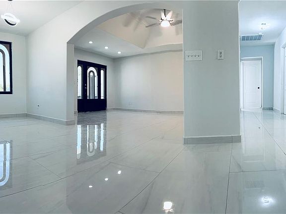 Gorgeous 3 Bed/2 Bath home sitting in half an acre of land, what is not to love about it? This home offers modern lighting, spectacular porcelain tile that will sweep you off your feet, and a beautiful white kitchen with sapphire blue countertops! The master bedroom has a walk in closet with a walk in shower and floating sink. The other bedrooms share a huge bathroom. You can access the amazing backyard through the kitchen leading to a covered patio that you can also use as a carport for two vehicles on rainy days. The possibilities are endless to build your oasis in this property! Schedule a tour today!