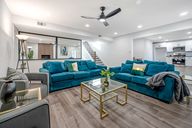 Extended covered patioLuxury vinyl plank floorsFlex spaceQuartz countertopsNatural lightOpen kitchenBold backsplash