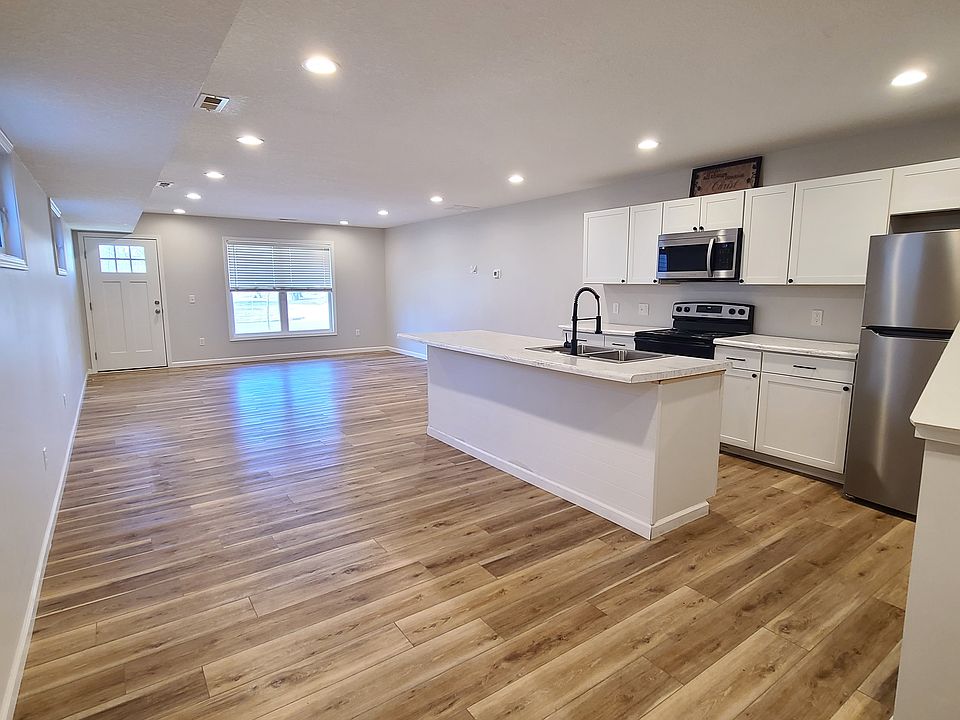 Clean modern homeModern fixturesConvenient half bathAttached garageTwo additional bedroomsBright open layoutGenerous closet space