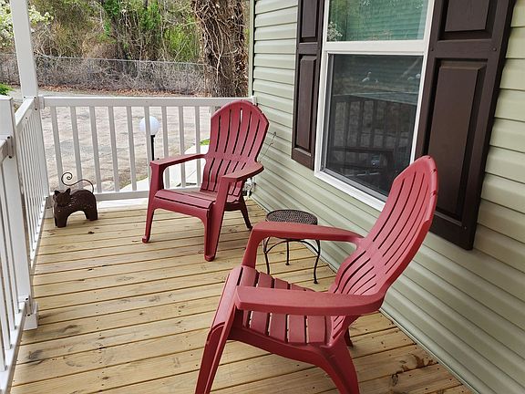 PRICE REDUCED!! ALMOST NEW & MOVE IN READY! This beautifully maintained 2 bedroom, 1 bath 2024 manufactured home in the desirable, YEAR-ROUND, 55+ Edgewood Village Park is ready and waiting for you. No construction delays, no planning stress, just unpack and settle in! Only gently lived in for four months, this home feels brand new. Enjoy your morning coffee on the charming front porch, then step into the spacious open-concept living room and kitchen, perfect for relaxing or entertaining. The kitchen features upgraded soft-close cabinetry, stainless steel appliances and a breakfast bar that easily seats four. Down the hall you will find a laundry room with washer and dryer included, a modern full bath with a low-profile shower, and two comfortable bedrooms - the primary offering plush carpeting and a generous closet. A side entrance with a small open deck leads to your 6' x 8' storage shed, perfect for bikes, beach chairs, or gardening tools. Located on a corner lot in the rear of the park overlooking the woods, in a nice quiet location. Built with 2 x 6 construction and high-efficiency elements, this home is designed to keep utility costs low year-round. No flood insurance required in this location. Affordable Homeowner's Insurance. A budget minded home!