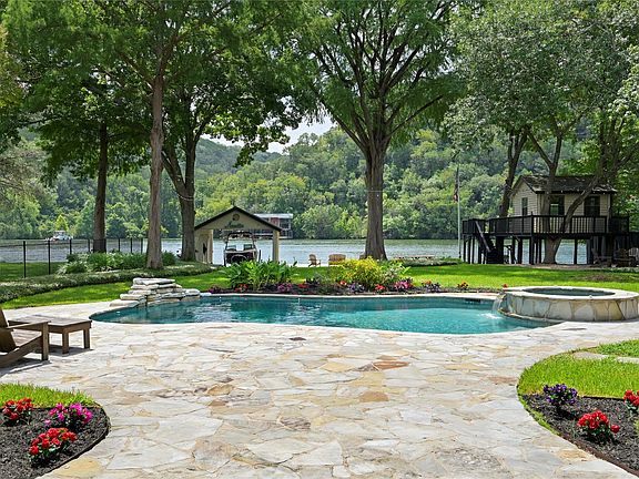 REDUCED BY $590,000! Tucked away in one of Lake Austin’s most sought-after neighborhoods, this property is a gated limestone residence that captures the charm of Southern living paired with coveted lakefront access. Situated on a .654-acre lot (per survey) with approximately 99' of water frontage, this property delivers privacy, comfort, and lifestyle in one of the most iconic settings in Austin. Originally built in 1981 and taken down to the studs from 2008 to 2011, the home has been thoughtfully updated to maximize both functionality and timeless appeal—complete with deep, full-length porches on both levels overlooking the lake. Spanning 4,775 sqft (per TCAD), the interior includes four bedrooms, three full baths, and two half baths. Every bedroom offers sweeping lake views and direct access to the porches, creating a seamless indoor-outdoor connection. The primary bedroom is wrapped in windows and overlooks the lake, with slide doors that open to the backyard and pool area. The primary bathroom feat. a steam shower and European jet bathtub. The gourmet kitchen is equipped with granite countertops, a large center island, with top-of-the-line appliances including a Wolf range and Miele oven with warming drawer along with a Subzero refrigerator and freezer built-in with custom cabinetry. A one-of-a-kind wooden shoreline deck extends along the water's edge—ideal for lounging, dining, or enjoying lakefront sunsets. The private boat dock includes a boat slip with a hydraulic lift, plus two jet ski hydraulic lifts, providing effortless access to Lake Austin adventures. The home also features a pool, gazebo, air-conditioned waterfront studio, and a three-car garage. Located within Austin ISD and just a short walk/golf cart ride to local favorite Ski Shores Café, this is a rare opportunity to own a legacy property on Lake Austin. Tax and assessed values are estimates for illustration purposes only. All figures should be independently verified. 24HR advance showing notice.