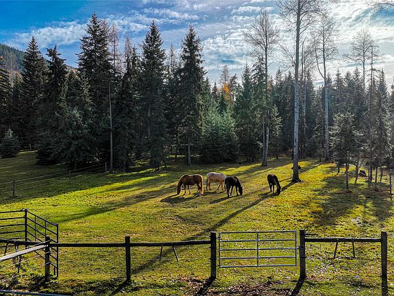 Discover this quintessential Montana ranchette — a custom timber-framed home with horse facilities, nestled on approximately 21 acres of sheltered land. Bordered on two sides by thousands of acres of National Forest, the property features a gently flowing, year-round creek that meanders through the grounds. The land is thoughtfully “parked-out” — mature trees preserved, undergrowth cleared, and open spaces blending naturally into the forest. A fully fenced pasture adjoins the barn area, complemented by three additional healthy, fenced pastures that have been rotationally grazed and carefully managed. Without horses, the pastures could be returned naturally to lush meadows or transformed into orchard and garden spaces using the electric fence to deter deer browsing. Endless miles of Forest Service roads and trails are directly accessed from the property for horse riding, hiking, or cross-country skiing. The property’s position in a protected valley offers comfortable year-round conditions, while inside the home, the smooth walls and warm timber tones create a welcoming atmosphere. Situated less than 30 minutes from Kalispell, this ranchette combines refined rural living, ranching, and luxury in one rare offering.