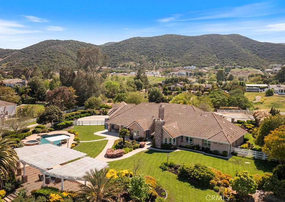 ***RARE CUSTOM LUXURY ESTATE WITH RESORT-STYLE SALTWATER POOL AND SPA ON 2.44 ACRES NESTLED IN THE LUSH GREEN HILLS OF WEST MURRIETA!!***WELCOME TO YOUR FOREVER HOME...A SPRAWLING CUSTOM MASTERPIECE PACKED WITH HIGH-END FEATURES AND PREMIUM MATERIALS OFFERING UNMATCHED LIFESTYLE***Featuring 5 Oversized Bedrooms, a Dedicated Home Office, 5 Bathrooms, a MASSIVE BONUS ROOM (approx 1200 sf in addition to the 5400 sf listed on the MLS), and a 4-Car Drive-Thru Garage! This Estate Checks Every Box! FULLY-PAID 50-PANEL SOLAR, EXPANSIVE PROFESSIONAL LANDSCAPE, PRIVATE WELL AND ENDLESS VEHICLE PARKING! From the Moment You Enter the Majestic Double Doors, You Are Greeted by Towering Coffered Ceilings, Crown Molding, Chandeliers and Lighted Art Niches. Off the Grand Foyer, the Formal Living and Dining Rooms Exude Elegance with Double Crown Molding, Custom Drapery, View Windows and a Deco Fireplace. Designed to Impress and Built to Entertain, the Chef’s Dream Kitchen is a Showstopper! Endowed with Premium Cabinetry, a Massive Island/Breakfast Bar, New Quartz Counters and High-End Jenn Air/Kitchen Aid Appliances...You Are Set to Host Your Prized Events! Cook to Your Hearts Delight with Built-In Double Ovens, a 6-Burner Stove w/Griddle, 2 Dishwashers and an Oversized Refrigerator-Freezer! The Adjacent Family Room Offers Panoramic Backyard Views, a Large Flagstone Fireplace, Sizeable Ceiling Fans, and Built-In Speakers. French Doors lead to Your Private Outdoor Paradise—and Wait Until You See It…THE ENTERTAINER'S BACKYARD IS STRAIGHT OUT OF A 5-STAR RESORT! The Massive 65’ Pergola with Flagstone Columns, Sparkling Pebble-Tec Saltwater Pool with Baja Shelf, Deep End, Waterfalls/Jets, 12-Seat Spa and Stamped Concrete Decking will be the Delight of Unforgettable Celebrations All Year Long! The Primary Suite/Retreat is a Spacious 32' Sanctuary with a Cozy Fireplace, Custom Dual Closets with Extravagant Built-ins, and Backyard Access. The Newly Remodeled Luxury Primary Bathroom/Spa features a Freestanding Soaking Tub, Dual-Sink Quartz Vanity, Private Toilet Room, and an Epic Walk-in Shower with 4 Heads, a 3-Person Bench, and a Classic Pebble Tile Floor. Each Secondary Bedroom is a Retreat in Itself—Offering Stunning Views, Closets with Built-ins and Attached or Adjacent Bathrooms. The Laundry Room is To Die for, and the HUGE BONUS ROOM Over the Garage is IDEAL as a Game Room, Gym or SEPARATE ADU! This is a Once-in-a-Generation Opportunity! SEE SUPPLEMENT FOR FULL FEATURE LIST!