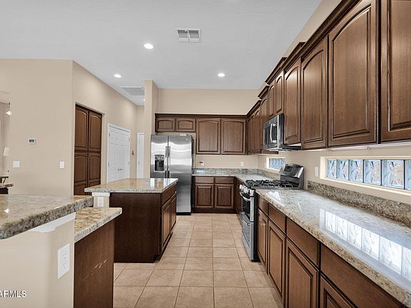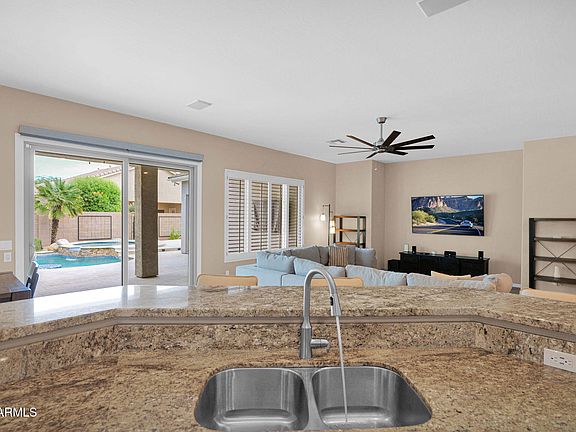 Beautifully upgraded home in the desirable Stetson Hills community of North Phoenix. Situated on an oversized lot, this property features an open entertainer's layout filled with natural light, granite countertops, and premium Andersen windows. The spacious primary suite includes a sitting area perfect for office space, a remodeled spa-style bathroom, and a walk-in closet. The home offers four bedrooms total, including an additional en suite. Enjoy a private backyard oasis with a sparkling pool, oversized spa, lush landscaping, multiple seating areas, and a natural gas fire pit. The climate-controlled 3-car garage with a 50A subpanel is ideal for hobbyists. Conveniently located near top-rated schools, parks, hiking, and dining, this home perfectly combines comfort, functionality and style