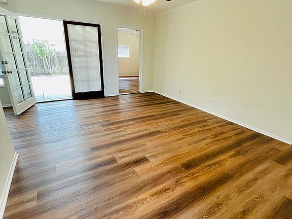 Located in a quaint neighborhood, this traditional style home has a great floor plan. This gem is features a total of (4) four-bedrooms, (2) two bathrooms with an attached two car garage. Three of the bedrooms are off the living room with new carpet and new blinds. The master bedroom has its own upstairs entrance off the family room with new carpet, blinds, private bathroom and spacious closet. The living room and huge family room feature beautiful French doors that open up to the enclosed pergola. Laundry room with washer & dryer appliances included. The remodeled kitchen features new cabinets, new granite countertops, and stainless steel appliances (dishwasher, stove, refrigerator). Central Heat (NO A/C) and private backyard area, pet friendly.