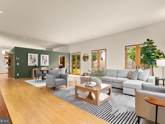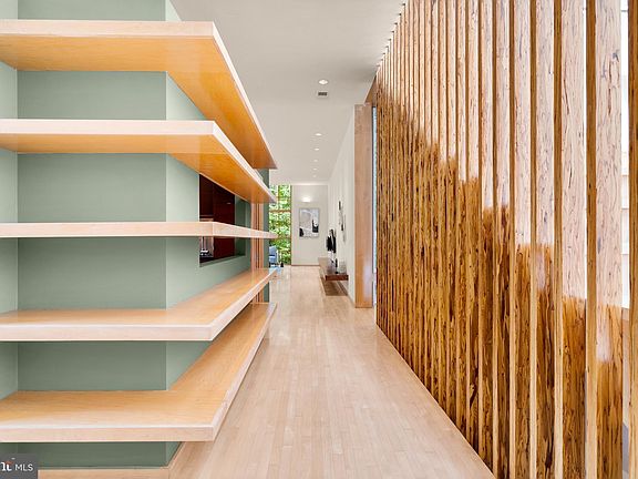 Architecturally stunning. Naturally bright. Perfectly placed. Welcome to 2504 Buckelew Drive—an award-winning, custom-designed contemporary residence just a short walk to West Falls Church Metro, yet quietly tucked into a peaceful, tree-lined enclave near the W&OD Trail. This Energy Star Certified home blends minimalist European aesthetics with intentional, light-filled design. Crafted to maximize sunlight throughout the day, it features floor-to-ceiling windows, multiple skylights, and a striking modern staircase accented with reclaimed wood slats that run from ceiling to basement—a beautiful marriage of form and function. At the heart of the home is a stunning living room with soaring windows, a ventless gas fireplace, and three sets of French doors that open to a private terrace surrounded by greenery—creating a showstopping space that’s both warm and impressive, perfect for entertaining or unwinding in style. The open-concept main level flows effortlessly into a gourmet chef’s kitchen featuring quartz countertops, high-end appliances, and clean-lined cabinetry. Maple wood floors run throughout the home, enhancing the cohesive, contemporary aesthetic. Upstairs, the luxury primary suite offers a serene retreat with a spa-inspired bath and a skylight above the shower—an everyday indulgence. The mezzanine level features dual office spaces, ideal for working from home or flexing into a playroom or creative studio. The expansive finished lower level includes a full bath, rec room, gym, and generous storage space. Additional highlights include a generator, irrigation system, custom built-ins, and energy-efficient systems throughout. All just steps to the W&OD Trail, neighborhood strolls for ice cream, and minutes to Tysons, Mosaic, parks, dining, and commuter routes—yet offering a level of privacy and tranquility rarely found this close-in. Plus award winning schools! This is more than a home—it’s a lifestyle designed for those who value clean design, natural light & purposeful living.