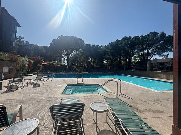 2 Bedroom, 2 bath condo in 24-hour guard gated community with amenities including pool, spa, tennis courts and a fitness center. Fireplace, outdoor deck, washer and dryer, heating and air. Brand new flooring and newly painted throughout. New master shower. Kitchen has microwave, dishwasher, refrigerator, wine cooler, and a new gas oven. 2 parking spaces, one inside, one outside. Master has ensuite bathroom. Storage space available both inside condo and above parking space in subterranean garage. Bike space. First months rent plus security deposit.