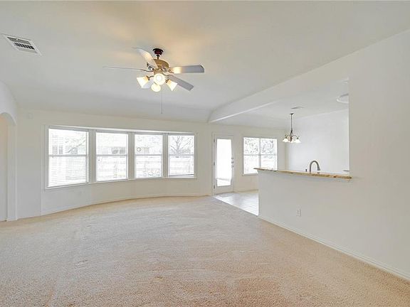 This adorable 1 story, 4 bed, 2 bath nestled in desirable Lakeline Ranch is a must see! Well maintained and move-in ready, this home features an inviting family room open to kitchen and breakfast area while centered around an impressive wood burning fireplace ~ a cozy formal dining room ~ a spacious kitchen with stunning granite counters, a custom backsplash, stainless steel appliances (refrigerator can convey), and a Culligan Reverse Osmosis under sink tank rented for $39/mo (buyer can elect to keep or it can be returned) ~ a master bedroom with high ceilings and an en suite that sports a double vanity, garden tub, separate shower, and walk-in closet ~ yards irrigated by manual underground sprinklers and beautiful flower beds irrigated by automatic drip lines ~ an amazing back patio perfect for relaxing or entertaining in the private back yard ~ Serviced by Leander ISD ~ within walking distance to all three level schools and directly across from neighborhood park ~ Come see for yourself!