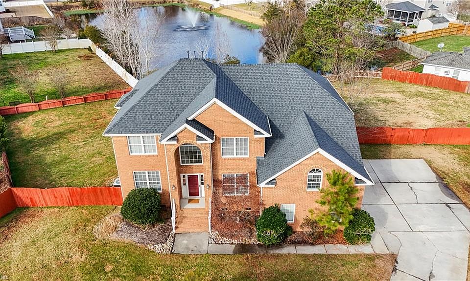 This 5-bedroom home in Virginia Beach’s River Oaks has much to offer a new owner, including over 3,000 sqft of living space, a large waterfront backyard, expanded driveway, and attached 2-car garage. Inside you will find plenty of room for friends and family to gather including a welcoming foyer, large den, spacious eat-in kitchen, formal dining room, and bonus room that can easily serve as a playroom, office, or homework space. Upstairs boasts five bedrooms, including a sprawling primary suite with sitting area, two walk-in closets, jetted tub, shower, double vanity, and water closet. The finished room over garage makes a great guest room, teen suite, game room, or private office space. Outside you will enjoy a screened-in deck, views of the pond, and a fenced yard with ample space for adults, kids, and pets to relax and play. All appliances convey. Roof 2020. Irrigation system on well. New Castle Elementary. Landstown Middle and High. This is the place!