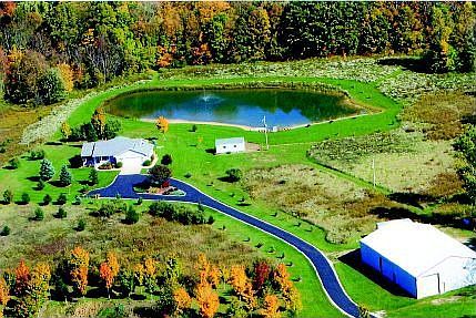 A covered composite deck spans the back of this meticulously maintained home in the with first floor laundry, finished walkout basement with craft room, family room with gas fireplace and possible 4th bdrm. New flooring, roof and A/C. Cellular blinds. Corian counter tops in the updated kitchen. Living room and master bedroom overlook the pond with a fountain which is stocked with bass, bluegill and catfish and at times, deer at play. The well house contains a separate well for the pond, an aerator and a whole house generator. Beyond the beautiful pond is 9+ acres of woods. The blacktop drive winds past the massive 88x55 pole barn with overhead doors that will accommodate a semi truck. The pole barn also has 2 workshops and a loft area. The list of updates are available by request. Minutes from the Delta GM plant, just 1 mile south of I69 at Potterville exit. Not visible from the road.