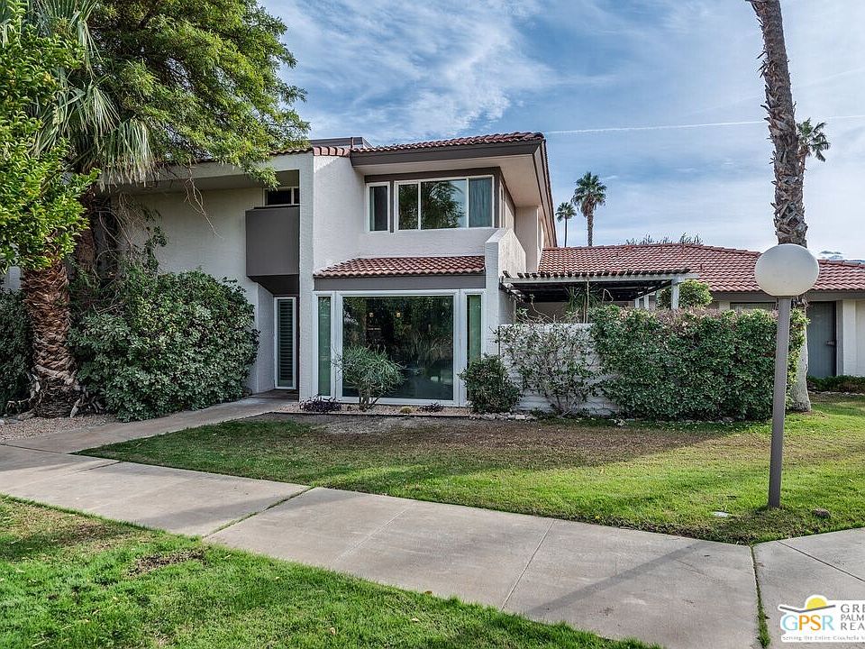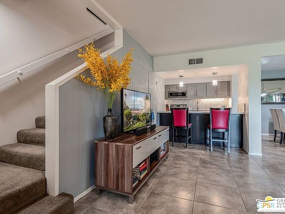 This delightful condo is located in Palm Springs Country Club. With a recently remodeled kitchen and downstairs bath, this unit has two bedrooms and one full and one half bathrooms. Enjoy the North mountain views from the comfort of your upstairs primary bedroom and from the downstairs living room's massive picture window. The private, covered patio is perfect for serene mornings or festive evenings of entertaining. The well-maintained complex provides a gated community with a range of amenities, and HOA includes cable, internet, water, trash, community saltwater pool, and a jacuzzi. This condo is an excellent opportunity whether you're looking for a primary residence, a seasonal rental investment, or a weekend retreat.