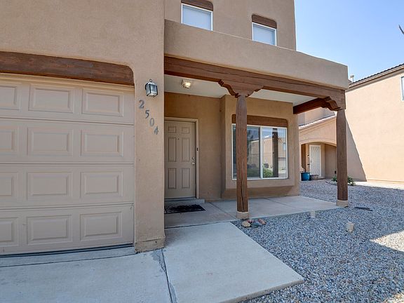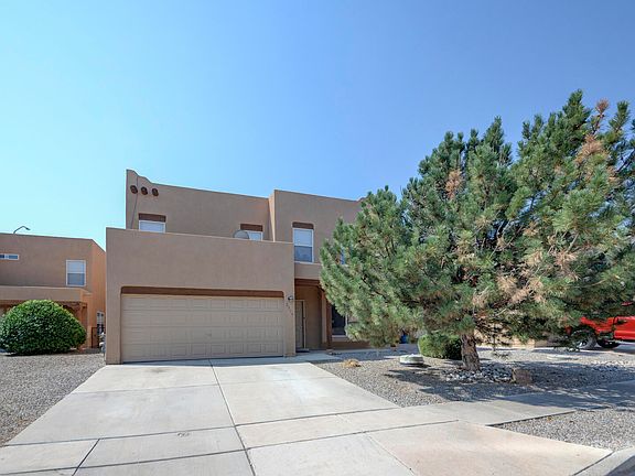 This spacious 2597 SQ FT near North Valley Home shows like NEW. In the last few months it has been carefully updated from stem to stern., Freshly painted from top to bottom. New carpet, New Stainless steel appliances. New Toilets. All rooms are Generously sized. Ample counter space in the kitchen, a pantry, and ample cabinetry. Spacious primary bedroom downstairs with separate tub and shower, large walk-in closet and water closet. 4 large bedrooms upstairs with over-sized closets. Thermal windows and doors provide lots of natural light. Refrigerated Air. Covered patio downstairs and upstairs balcony. HOA covers front landscaping and is only $140 Quarterly. Easy care back landscaping. Near Old Town and the Bosque Trails. Easy to show.