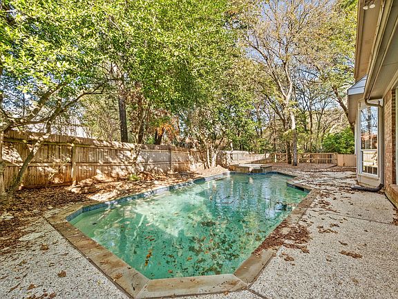togethers! Breakfast, Dining, Office are also on the first floor! Just in time for Thanksgiving, because we all know one room won’t do. Kitchen-living overlooks the swimming pool-spa and is convenient for entertaining friends and family. The placement of this home at the end of a cul-de-sac allows a larger lot than most and is adjacent to the creek. Upstairs Primary bedroom is separate from other bedrooms and amply sized. Tankless hot water heater installed in 2025.